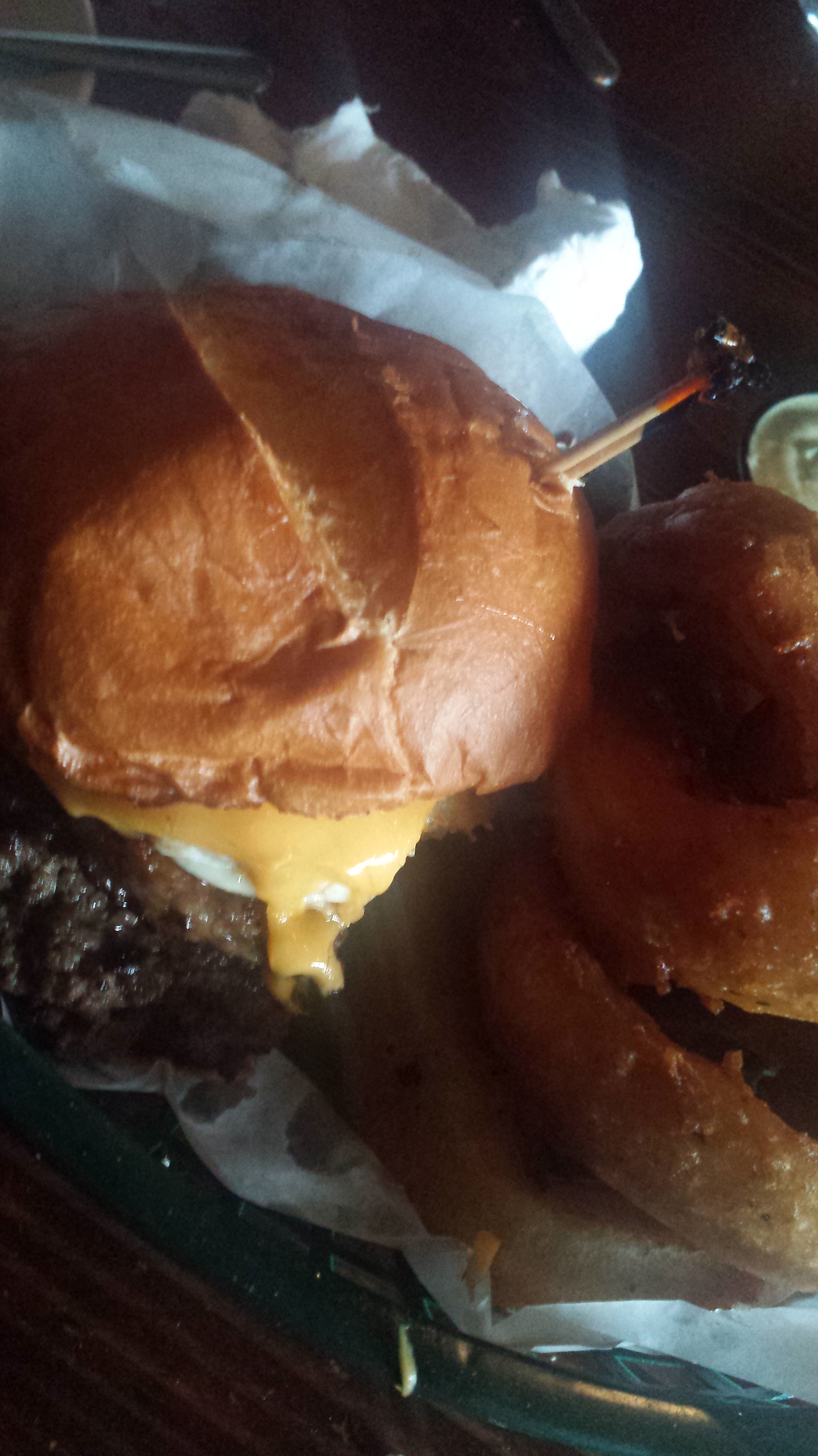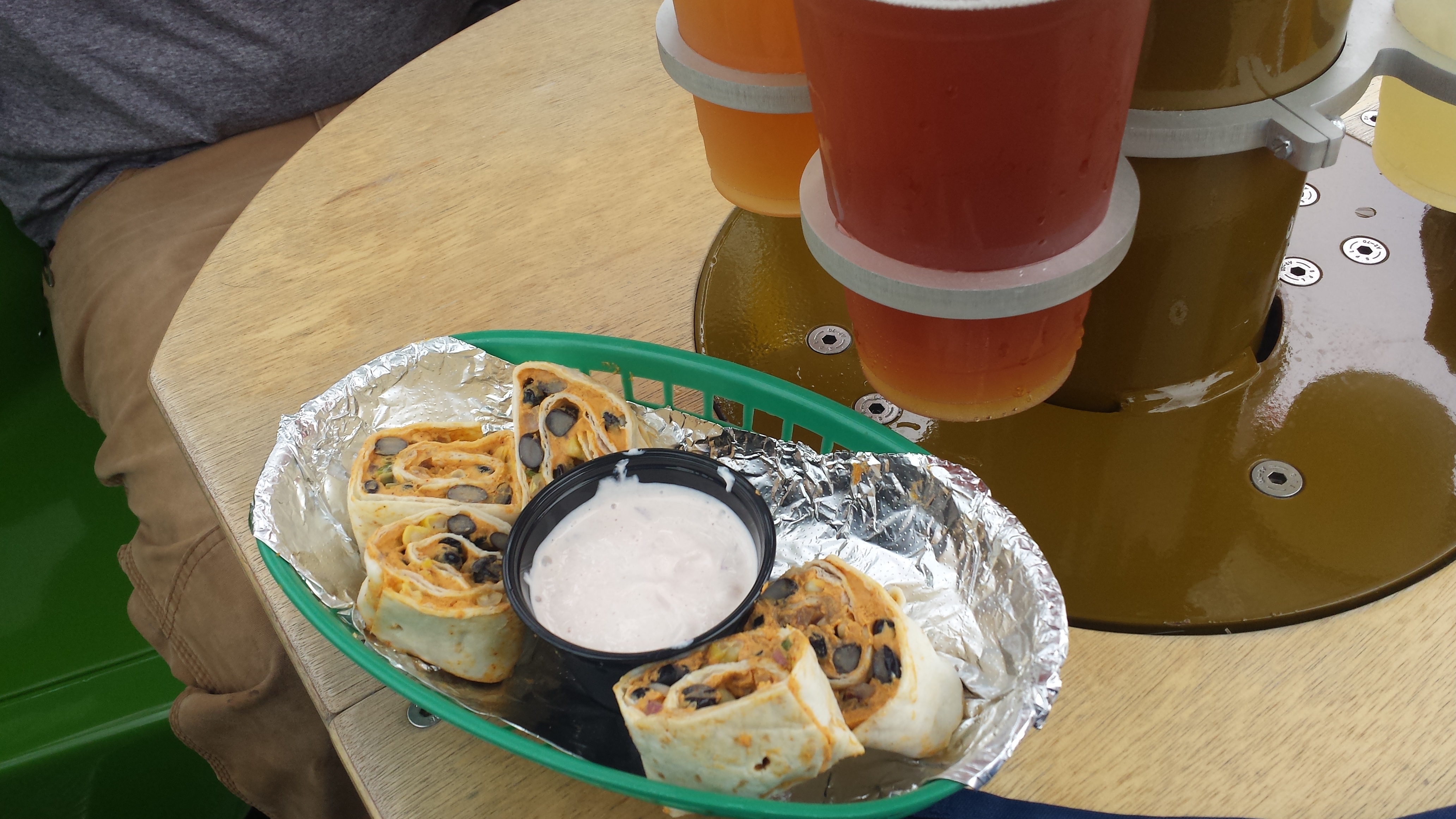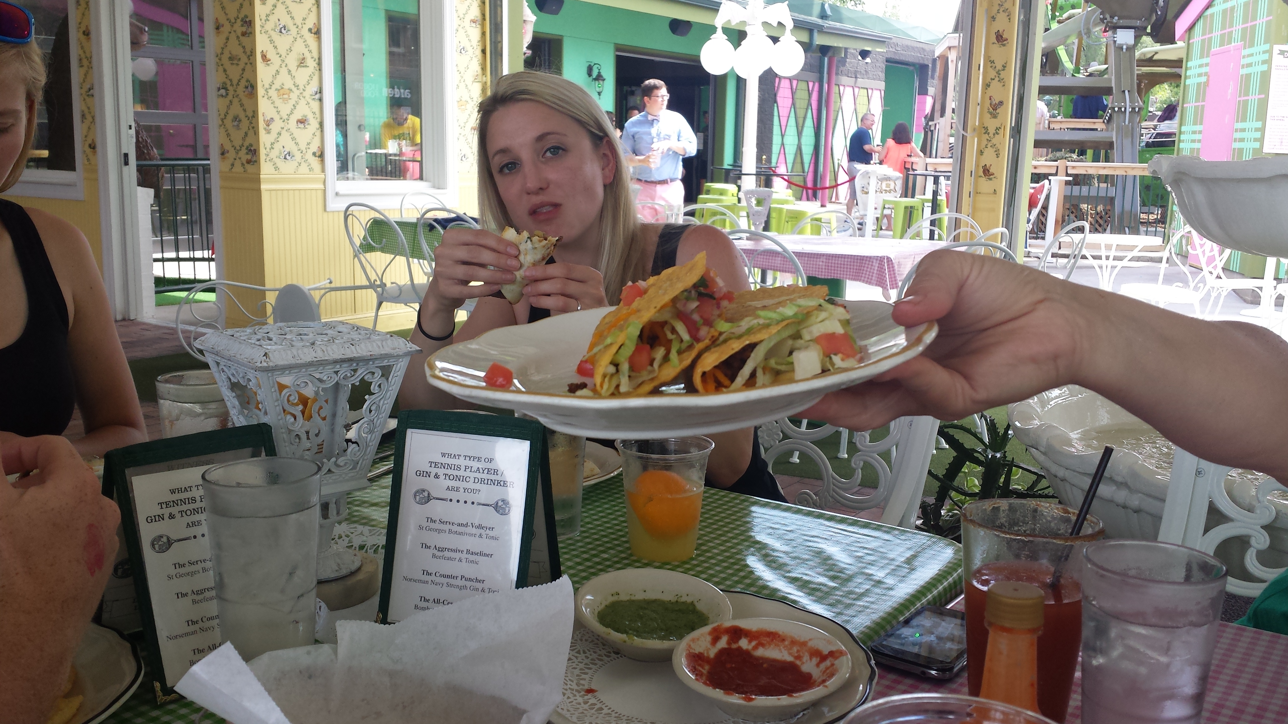Once off the ferris-wheel we scoped out a table on the patio. This was not a easy task. The place was quickly filling up with colorful people. Apparently the Color Run, a race where they spray you with paint as you are running. Anyways it had just finished up not to far away from the restaurant and now the finishers were making their way to Betty’s for an after race meal. While the task was not an easy one we made do and found a table. But soon after we ordered we found out that this table was not the table for us.